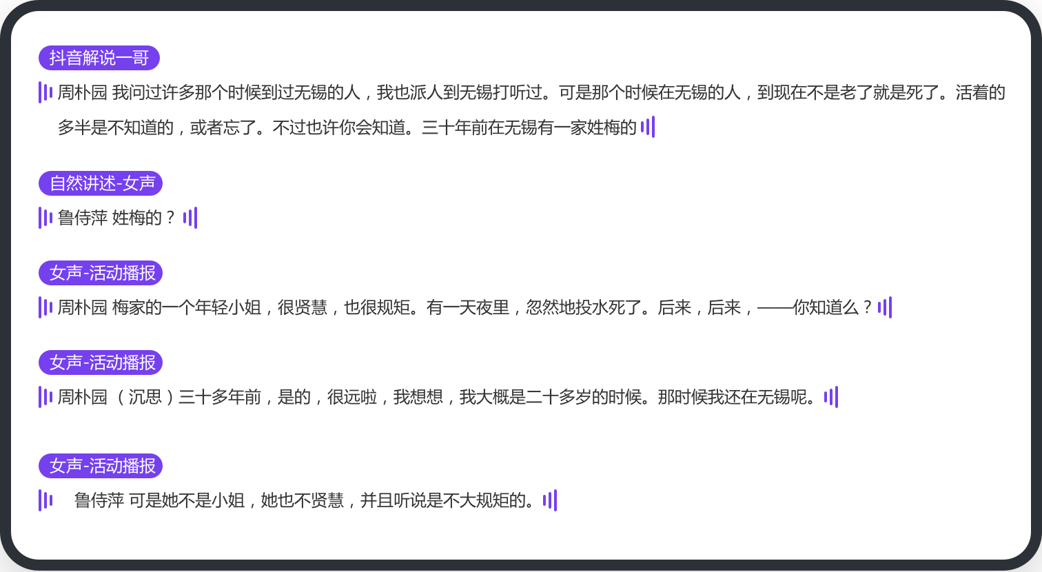 影視解說模式、自定義背景音、特效音、變聲、語速可調、智能斷句、多音字糾錯